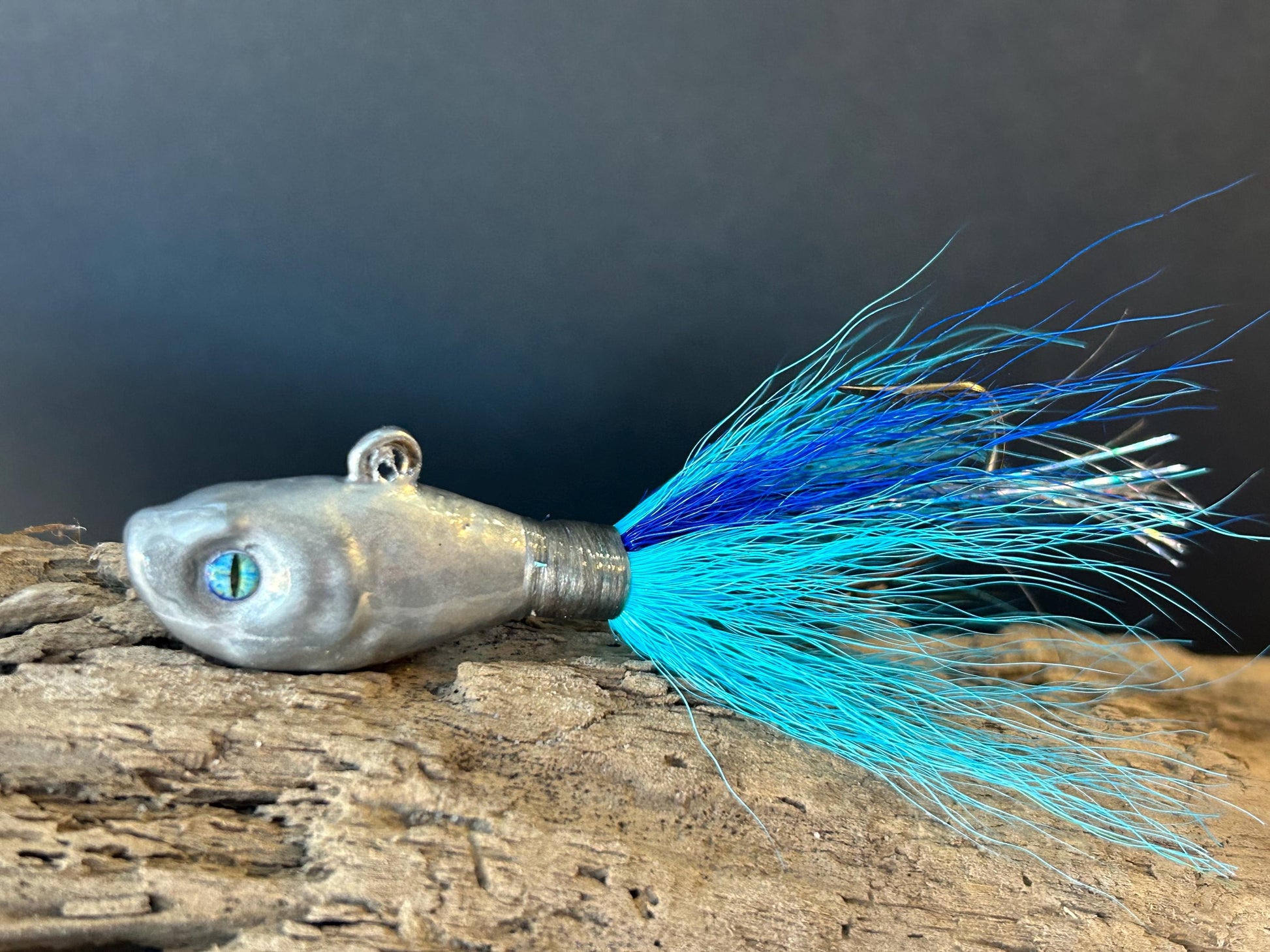 Available in: 1/2 oz 2/0 hook 3/4 oz 3/0 hook 1 oz 4/0 hook 1 1/2 oz 5/0 hook