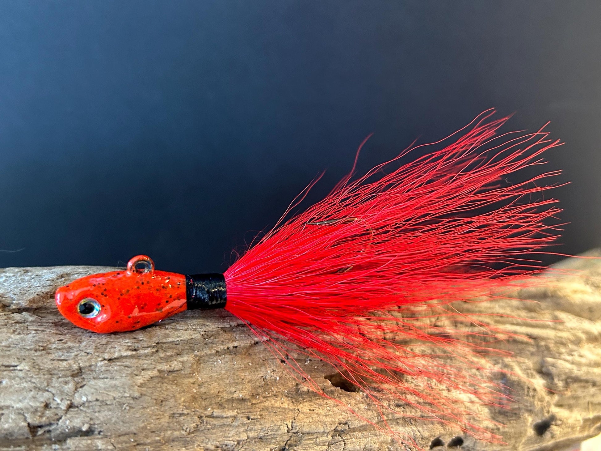 Available in: 1/2 oz 2/0 hook 3/4 oz 3/0 hook 1 oz 4/0 hook 1 1/2 oz 5/0 hook