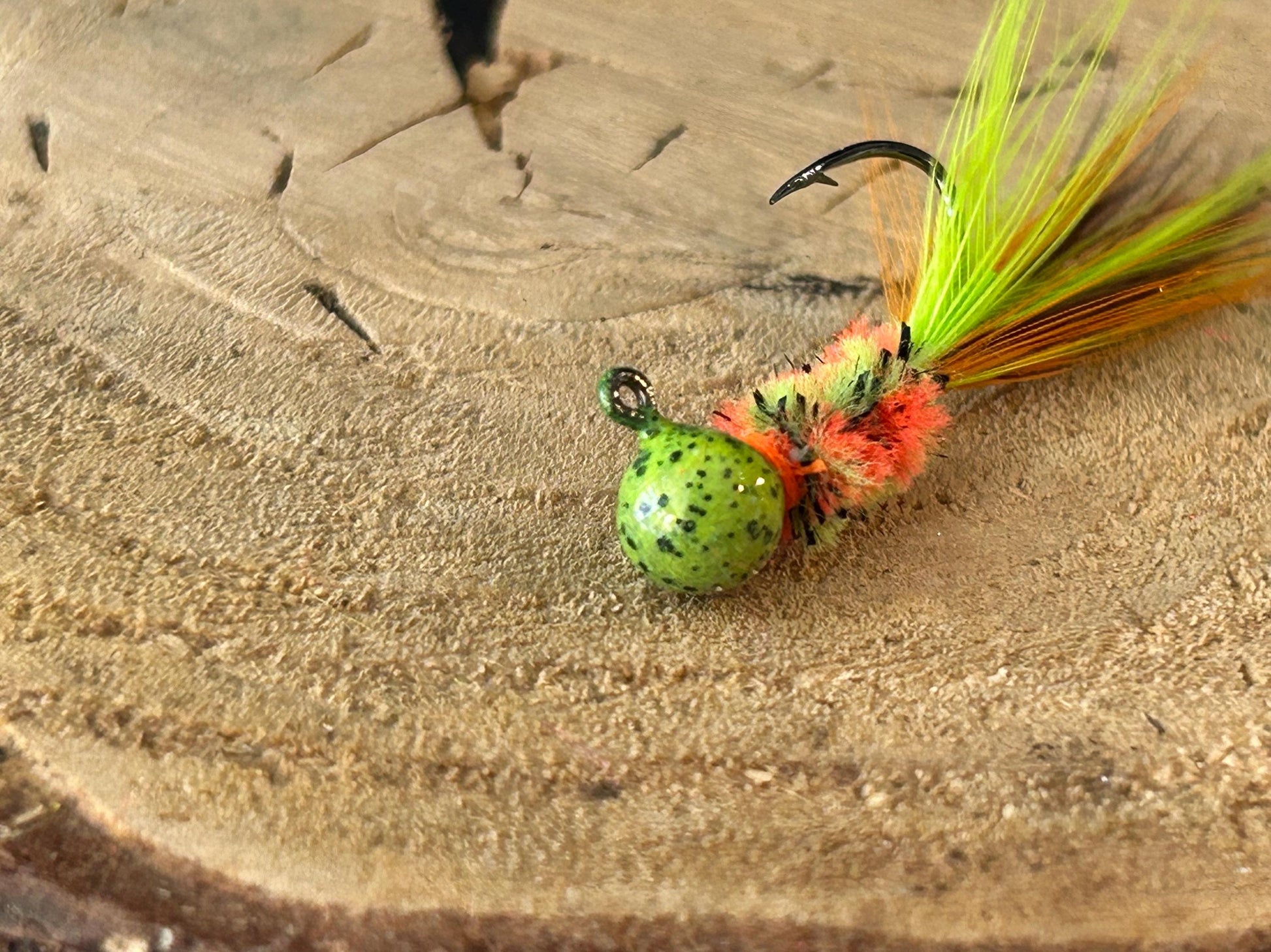 Hand tied hackle feather crappie jigs