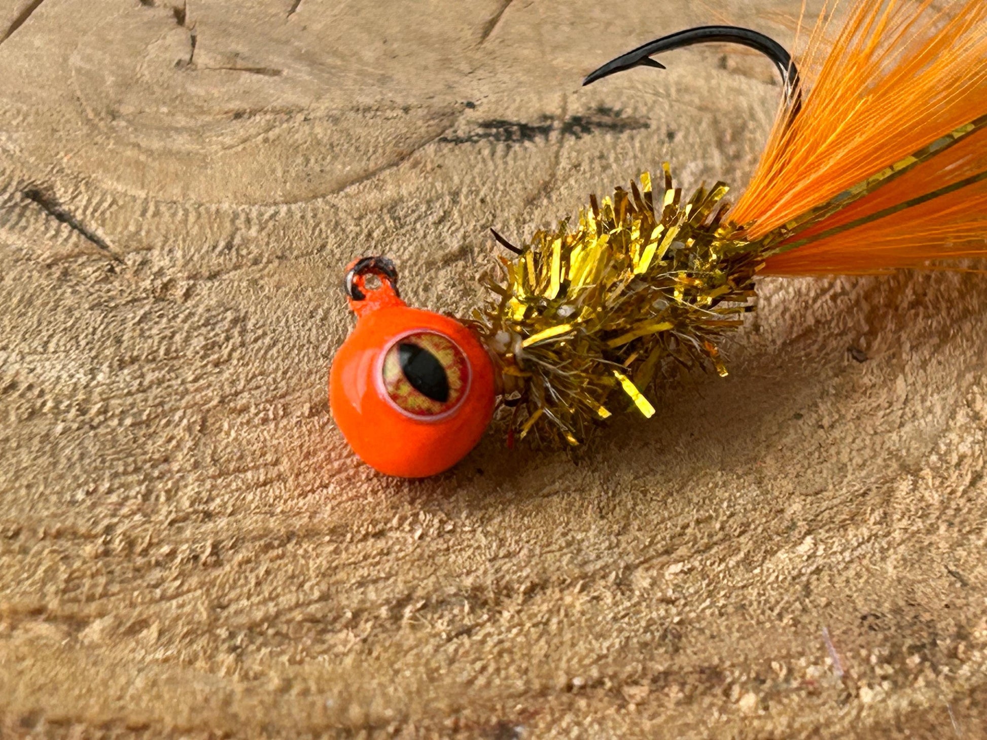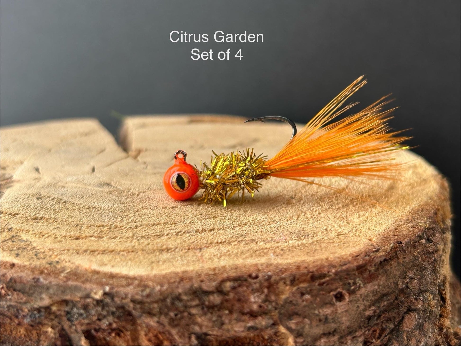 1/8 oz sickle hook #2 or 1/16 oz sickle hook #4 or 1/32 oz sickle hook #6