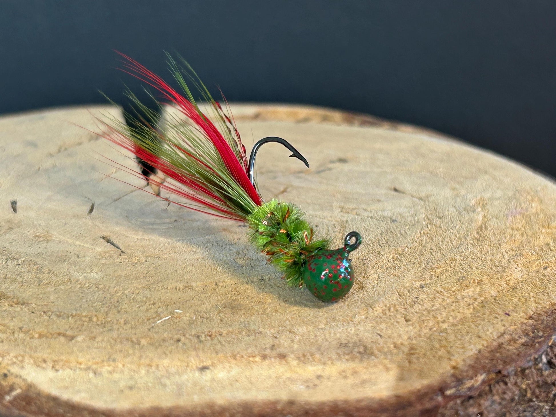 1/8 oz sickle hook #2 or 1/16 oz sickle hook #4 or 1/32 oz sickle hook #6
