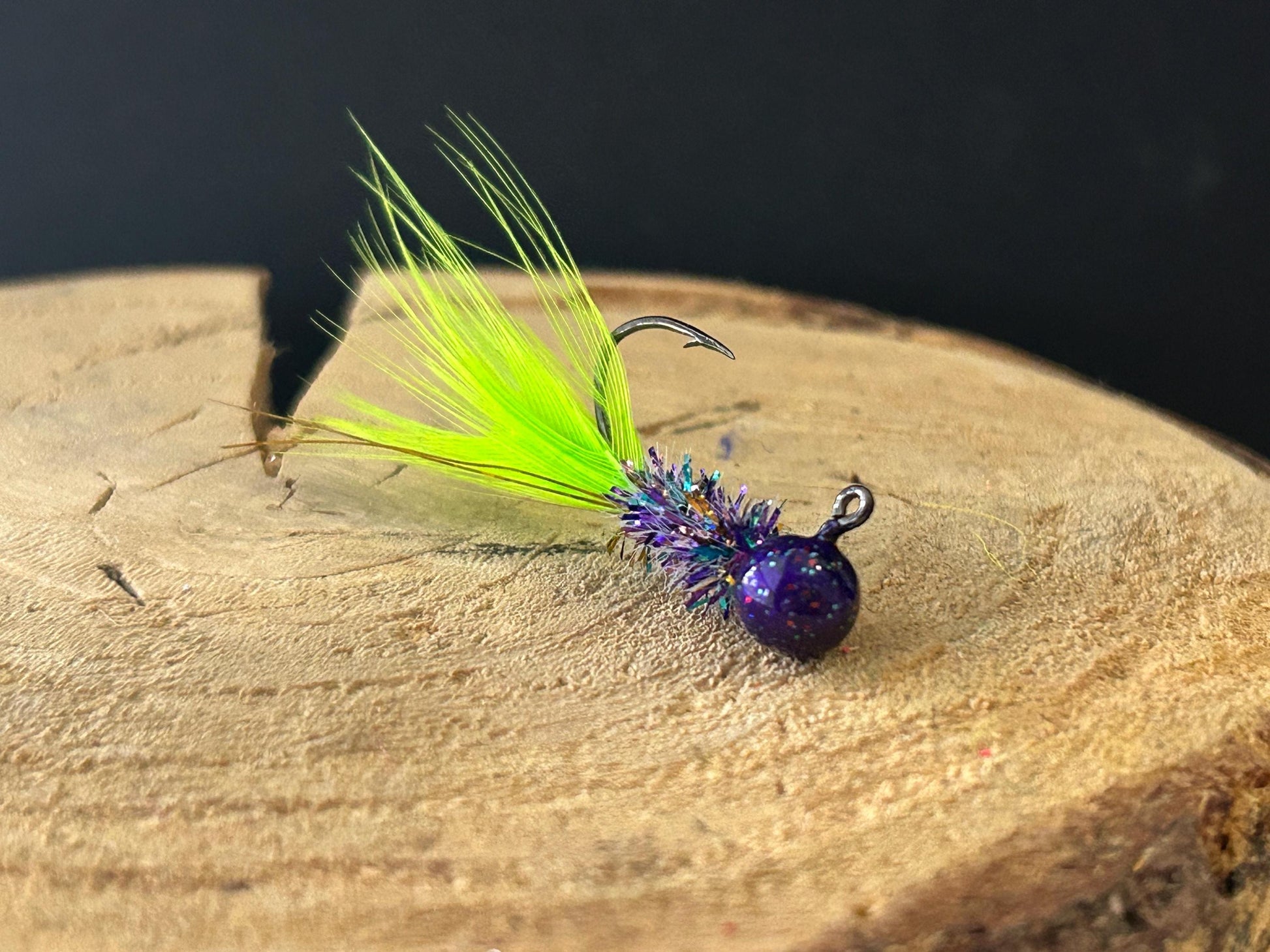 1/8 oz sickle hook #2 or 1/16 oz sickle hook #4 or 1/32 oz sickle hook #6