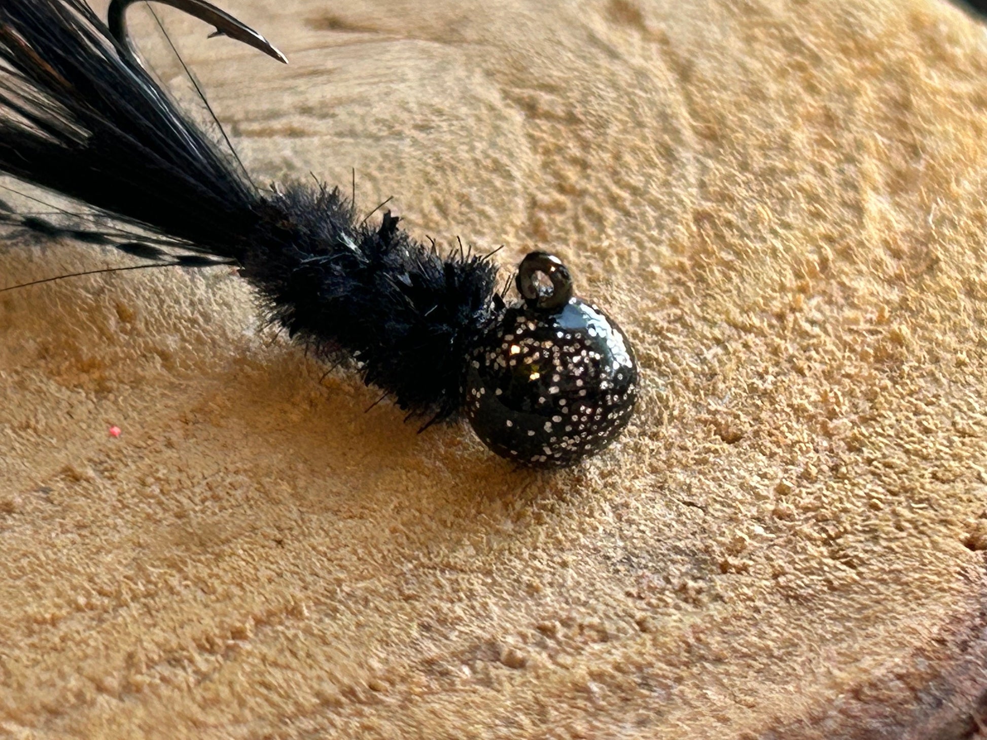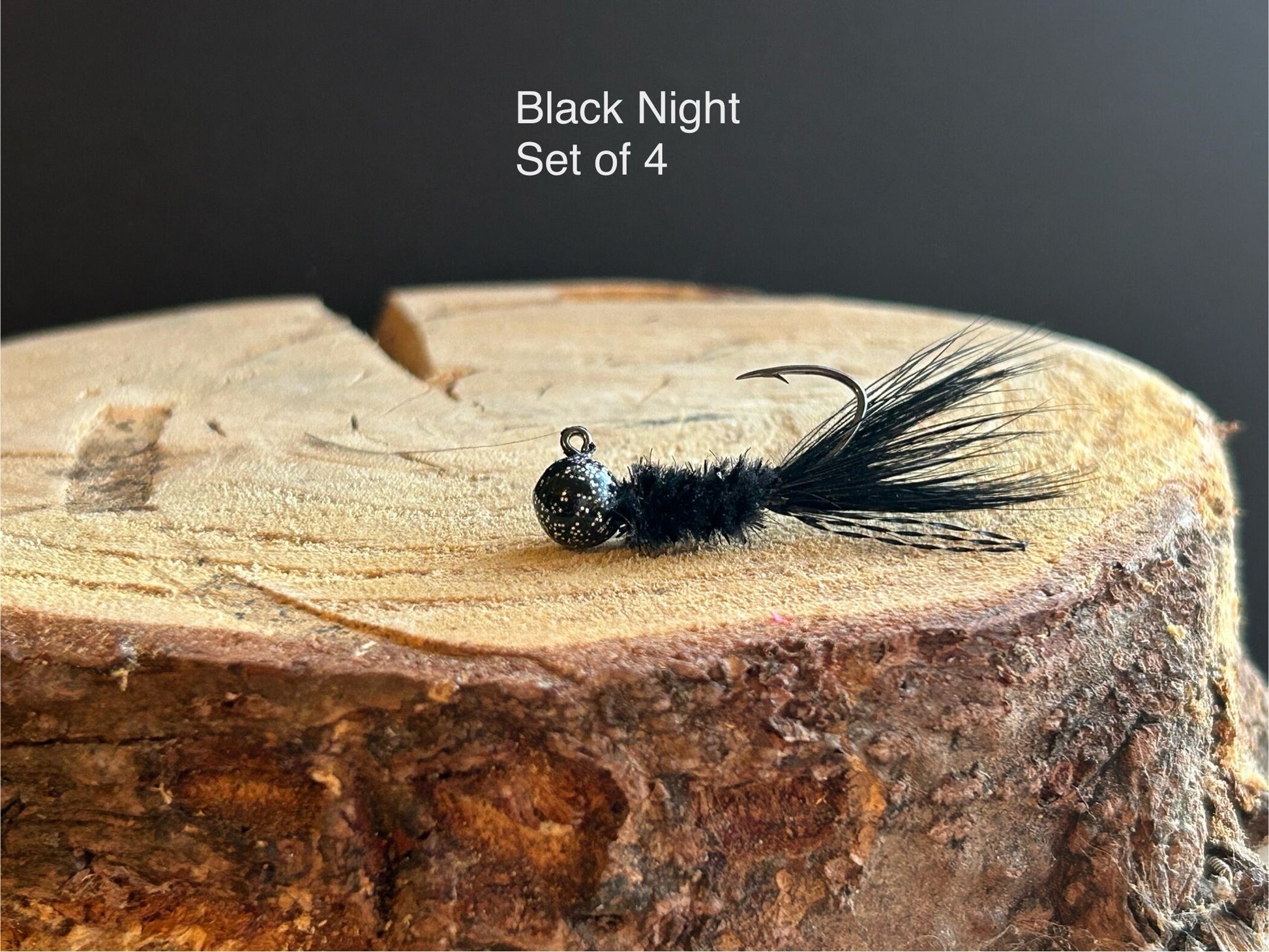 1/8 oz sickle hook #2 or 1/16 oz sickle hook #4 or 1/32 oz sickle hook #6