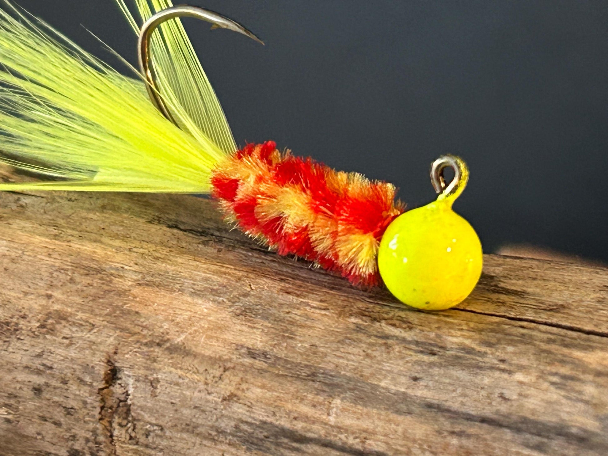 1/8 oz sickle hook #2 or 1/16 oz sickle hook #4 or 1/32 oz sickle hook #6