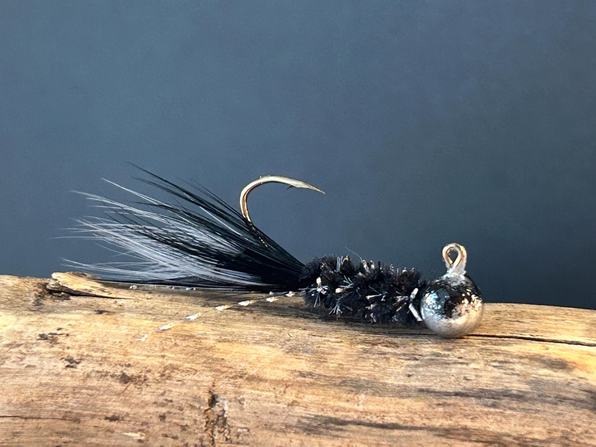 1/8 oz sickle hook #2 or 1/16 oz sickle hook #4 or 1/32 oz sickle hook #6
