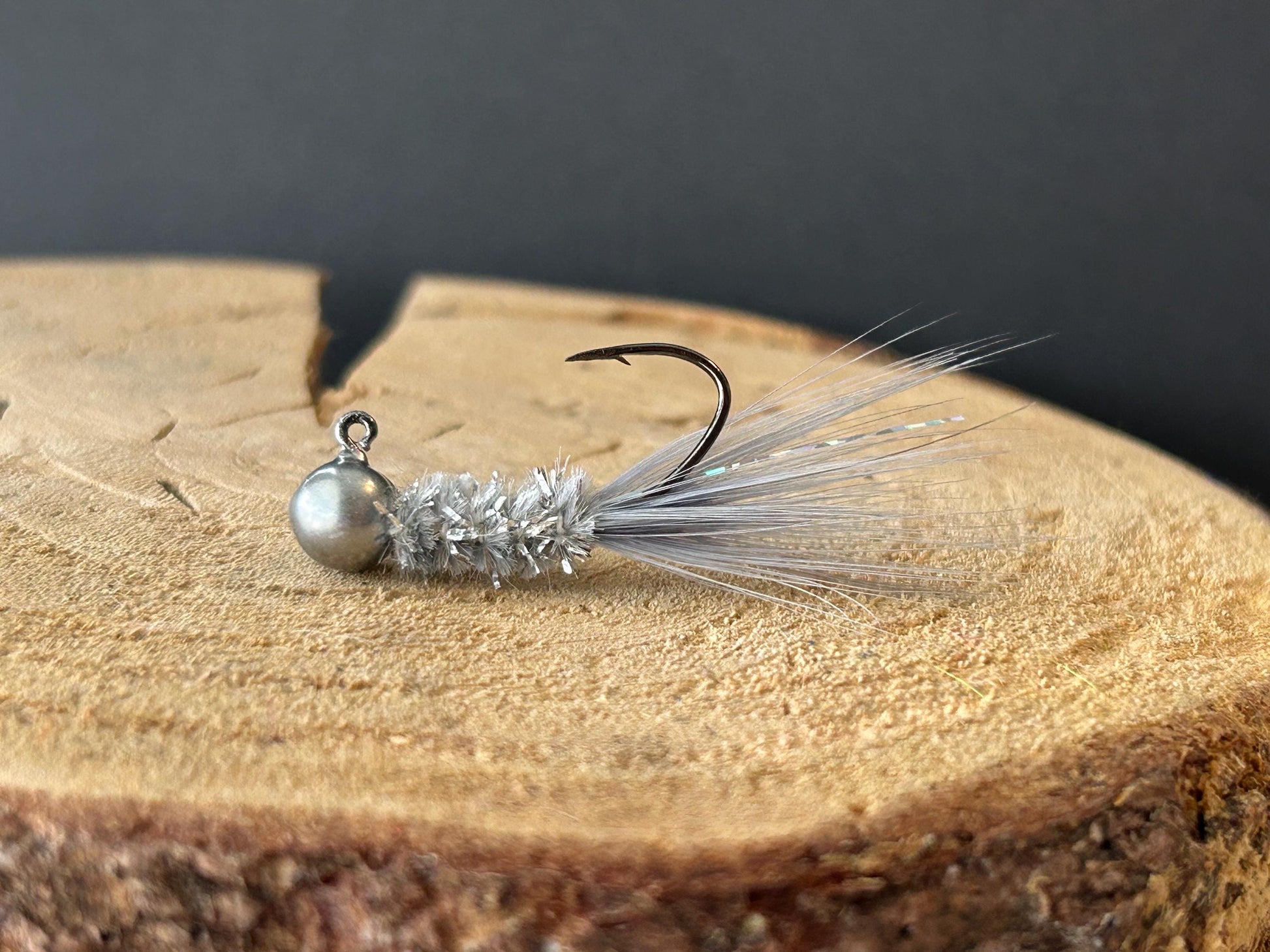 1/8 oz sickle hook #2 or 1/16 oz sickle hook #4 or 1/32 oz sickle hook #6