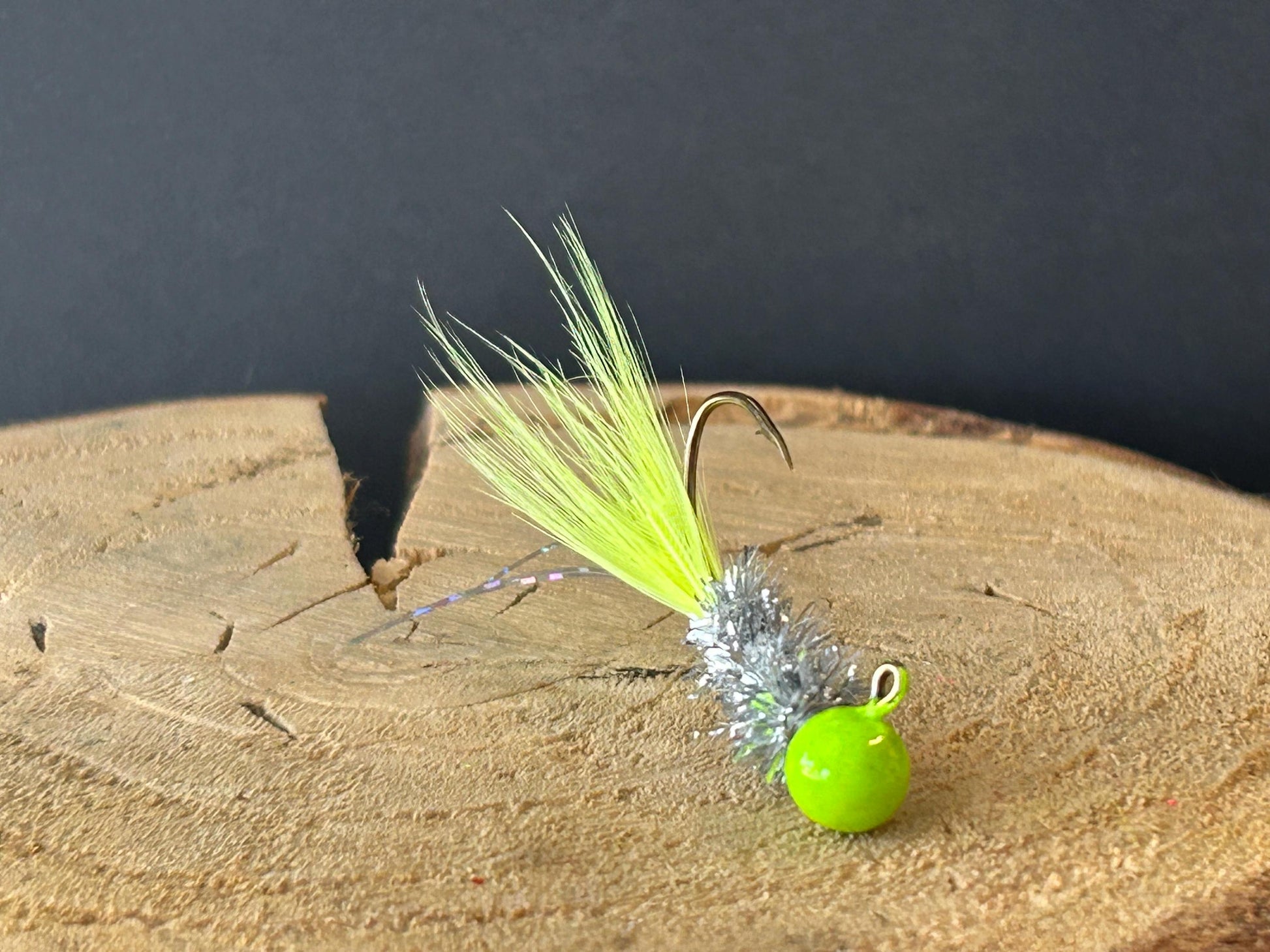 1/8 oz sickle hook #2 or 1/16 oz sickle hook #4 or 1/32 oz sickle hook #6