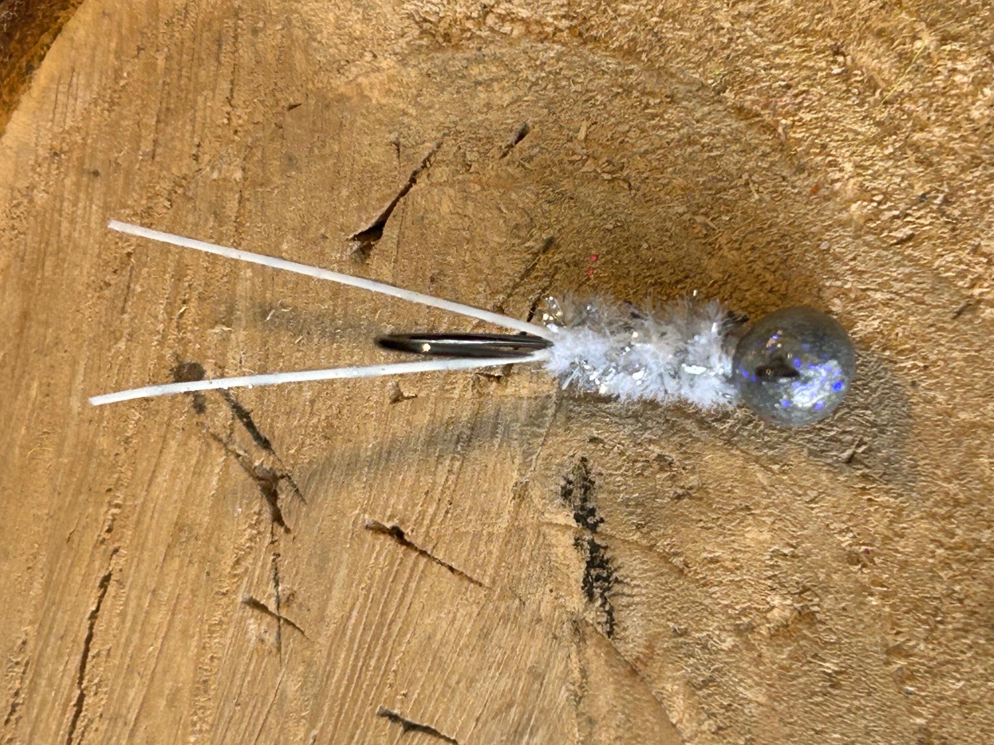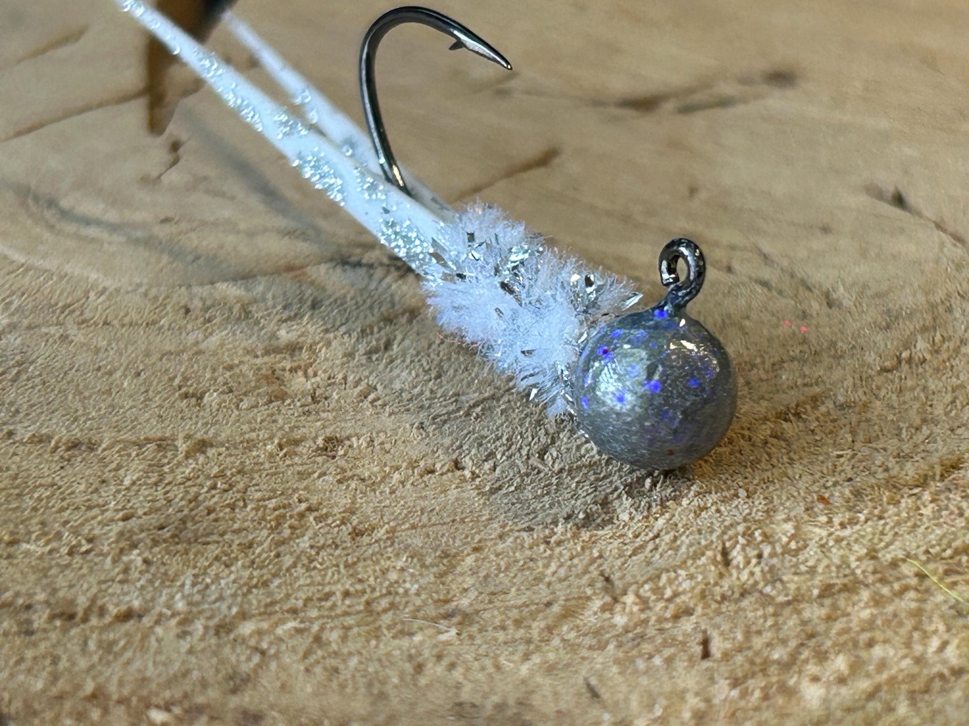 1/8oz sickle hook #2 or 1/16 oz sickle hook #4 or 1/32 oz #6