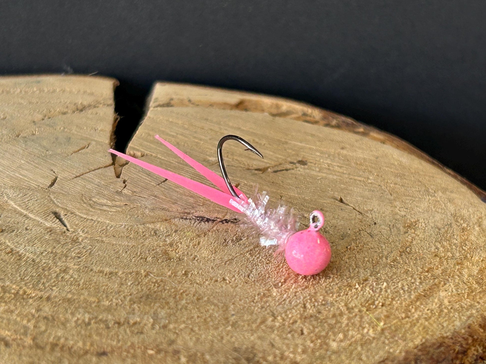 1/8oz sickle hook #2 or 1/16 oz sickle hook #4 or 1/32 oz sickle hook #6