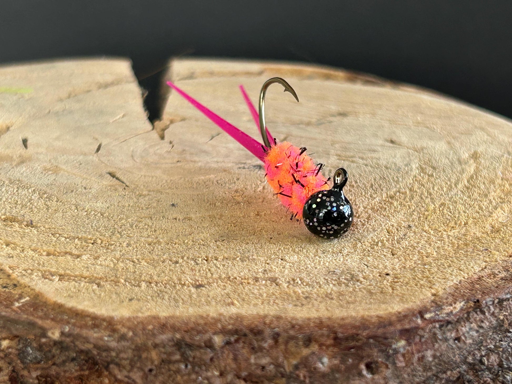 1/8oz sickle hook #2 or 1/16 oz sickle hook #4 or 1/32 oz #6