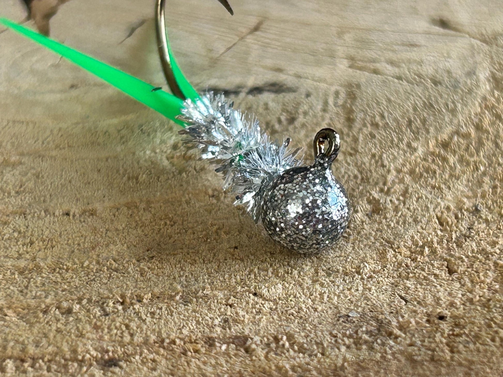 1/8 oz sickle hook #2 or 1/16 oz sickle hook #4 or 1/32 oz #6