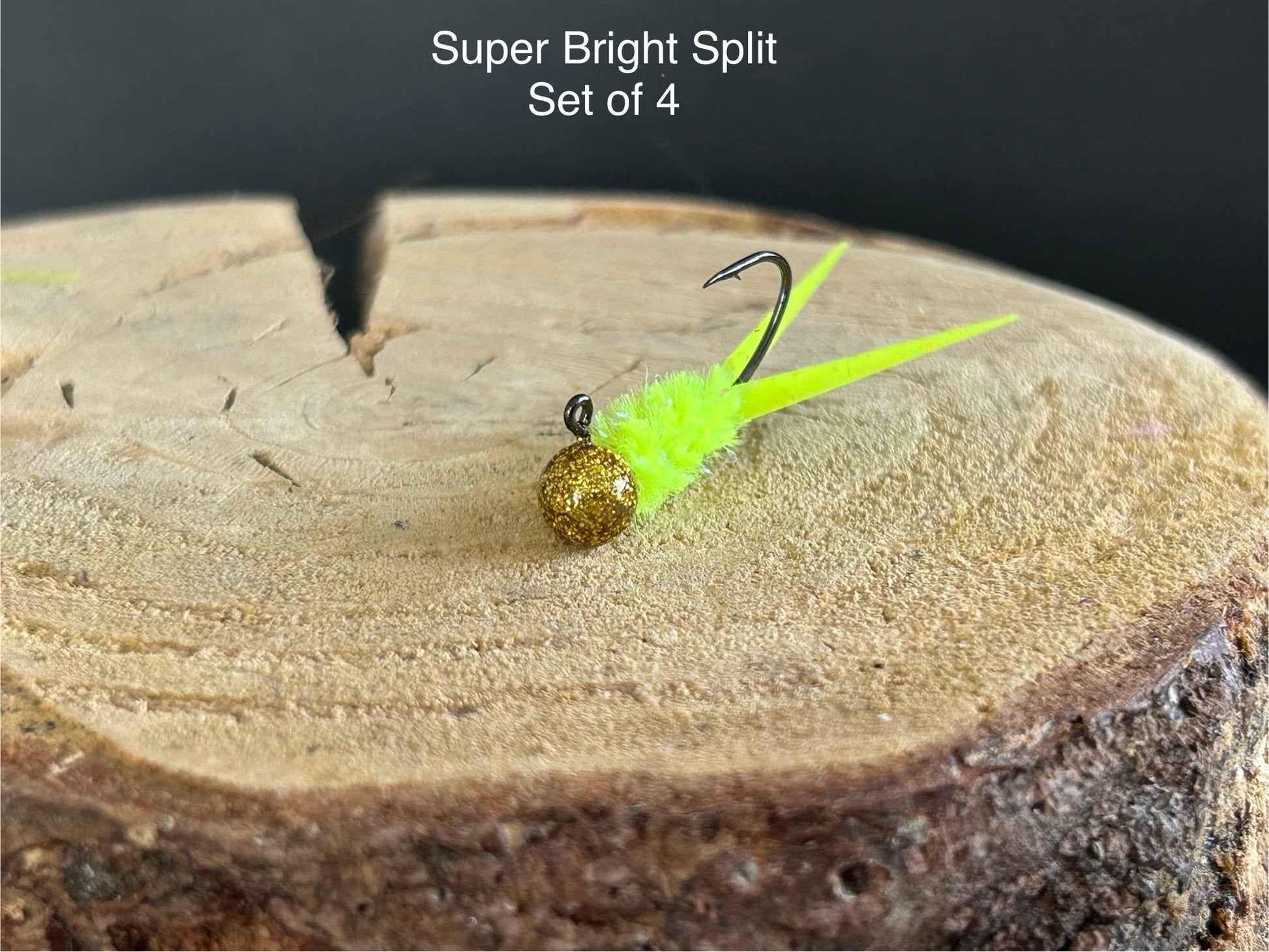 1/8oz sickle hook #2 or 1/16 oz sickle hook #4 or 1/32 oz #6