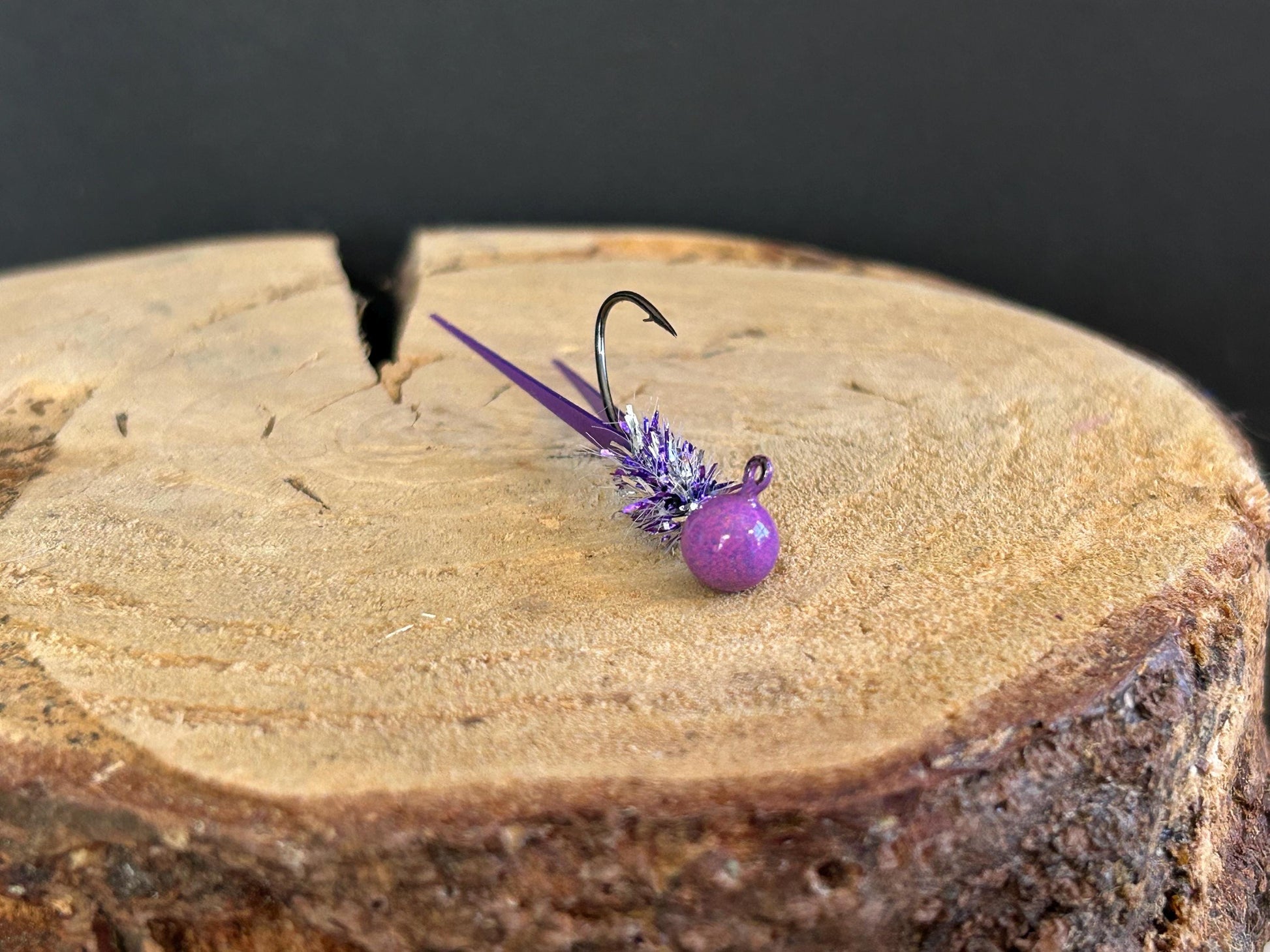 Light purple ball head 1/8 oz sickle hook #2 or 1/16 oz sickle hook #4 or 1/32 oz #6