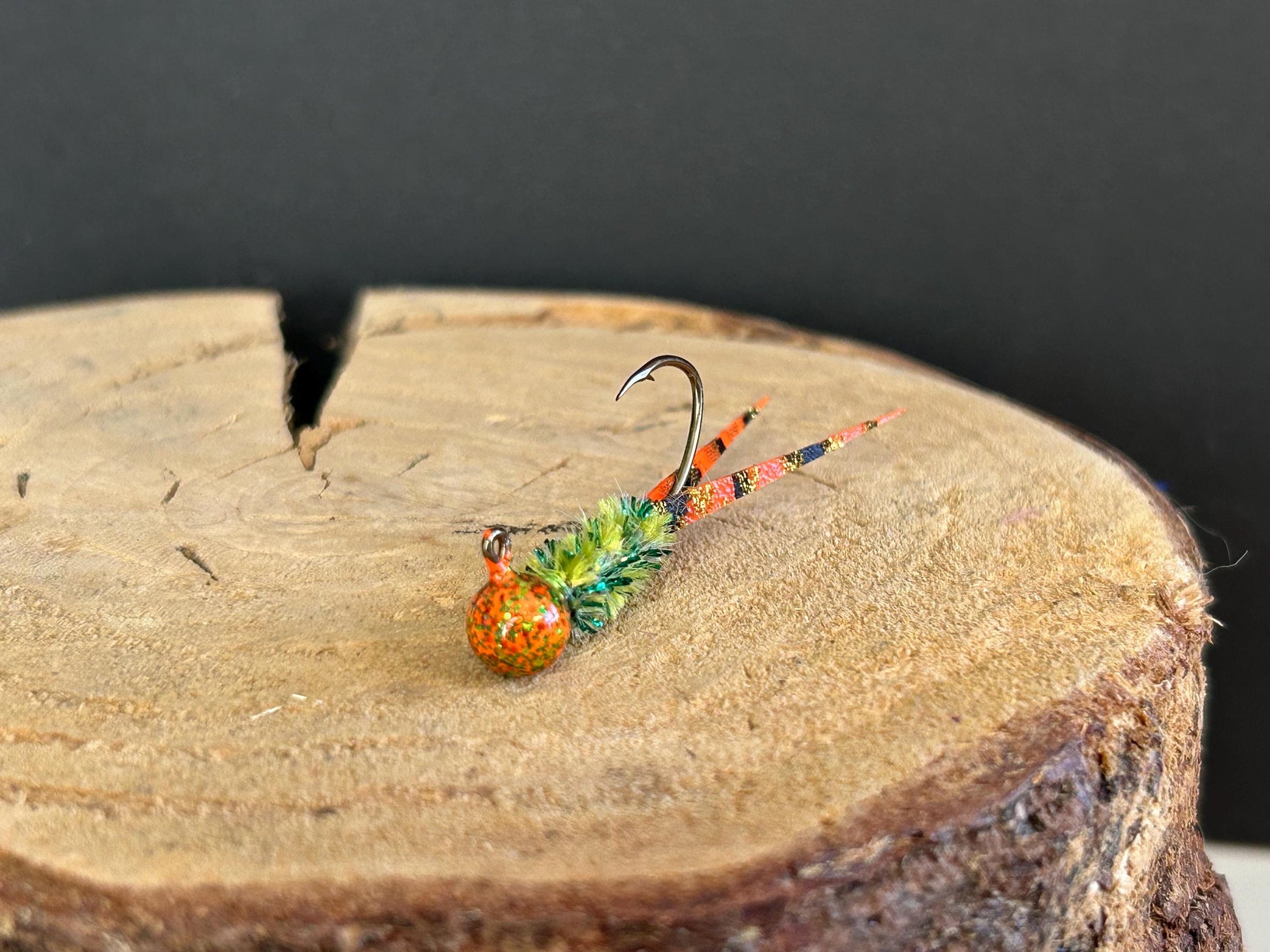 1/8 oz sickle hook #2 or 1/16 oz sickle hook #4 or 1/32 oz #6