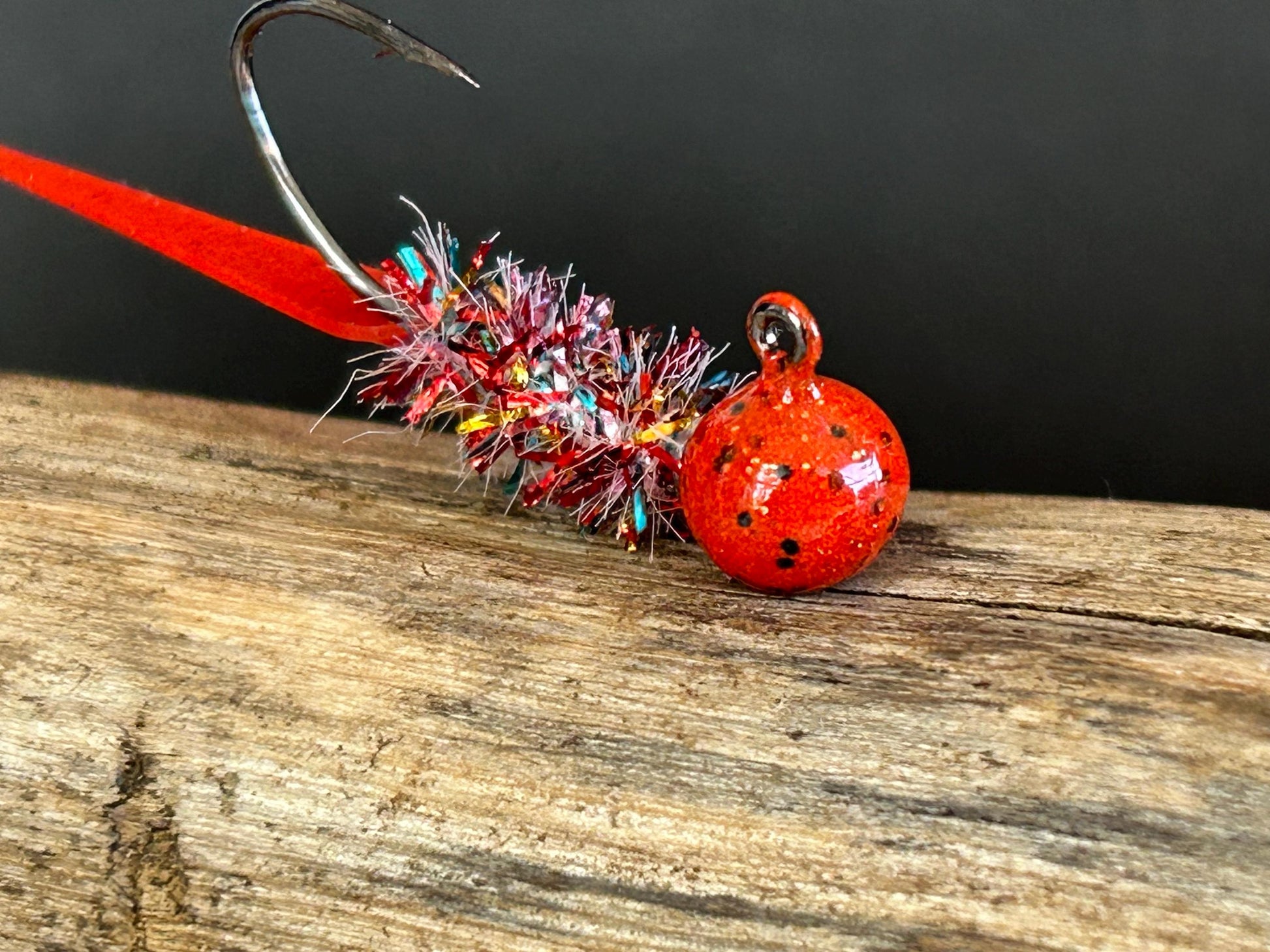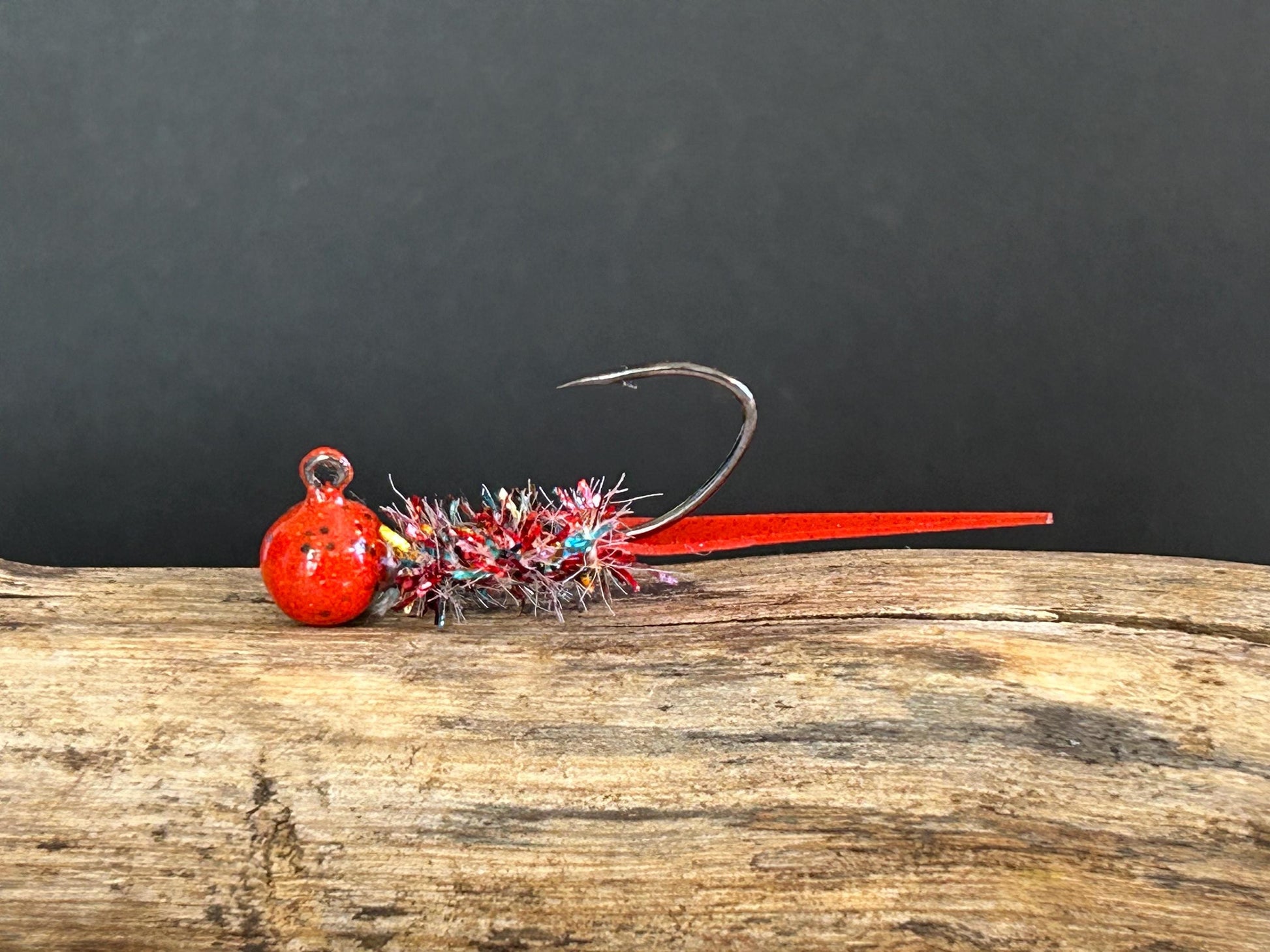 1/8 oz sickle hook #2 or 1/16 oz sickle hook #4 or 1/32 oz sickle hook #6