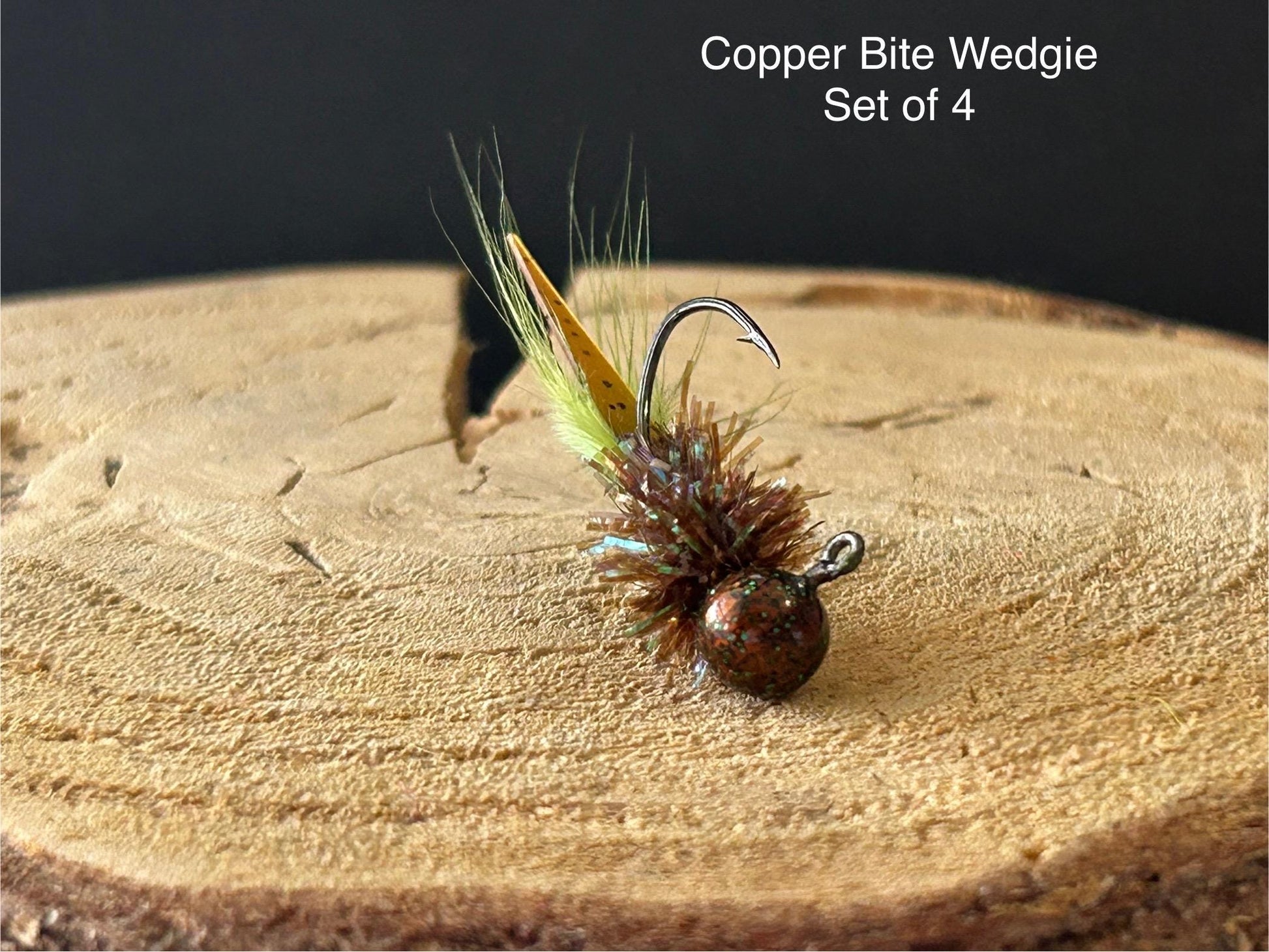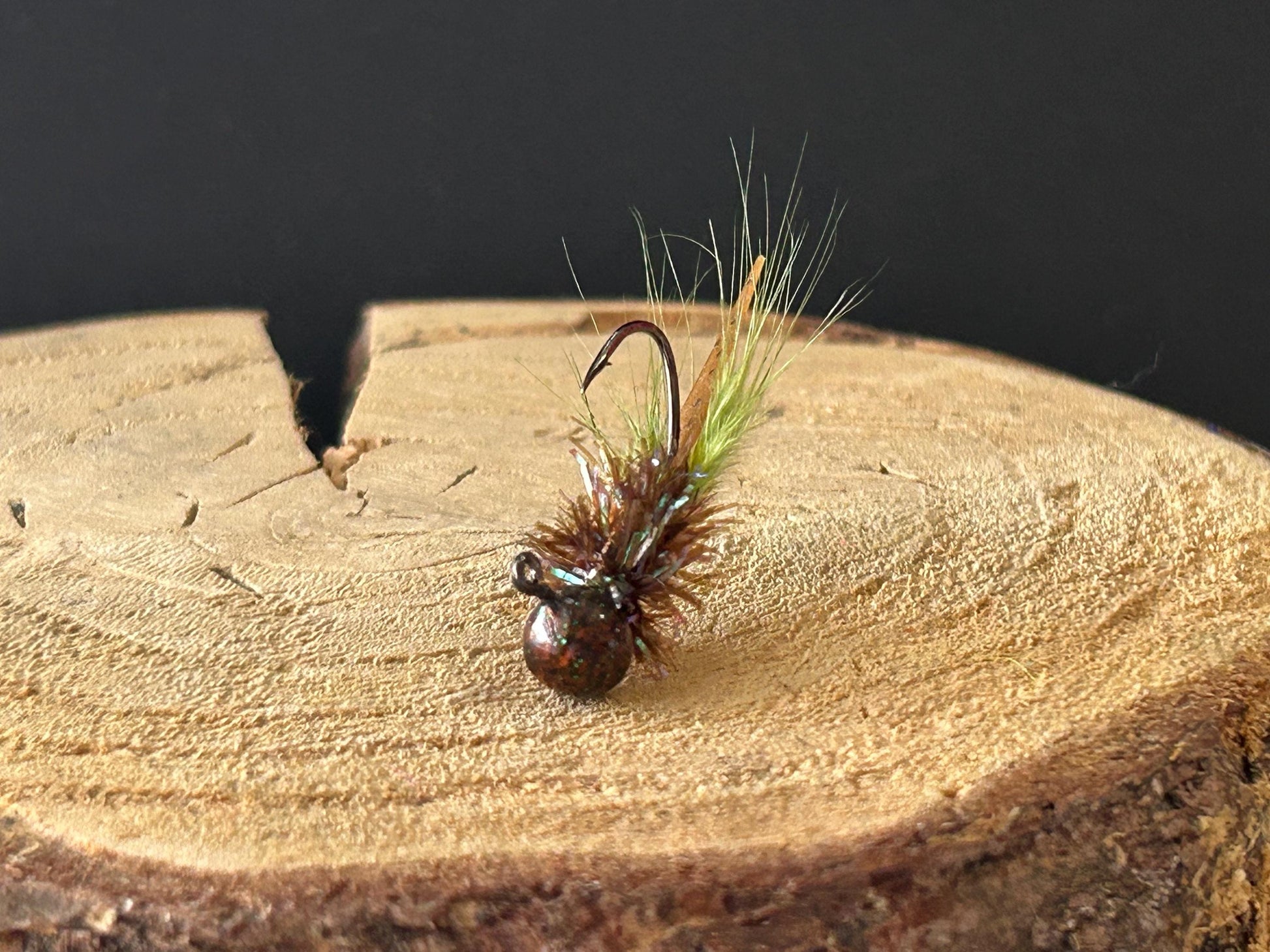 1/8 oz sickle hook #2 or 1/16 oz sickle hook #4 or 1/32 oz sickle hook #6