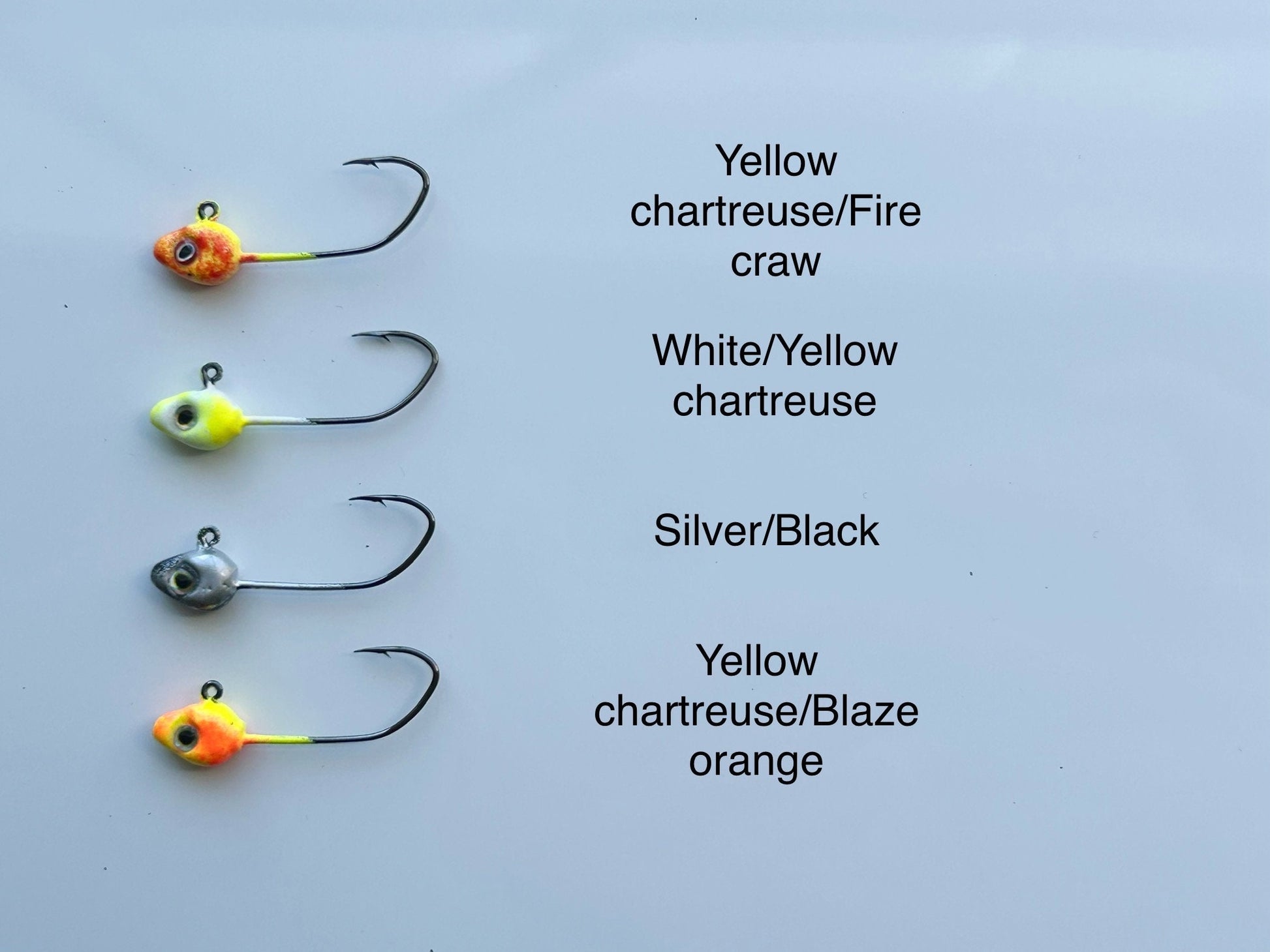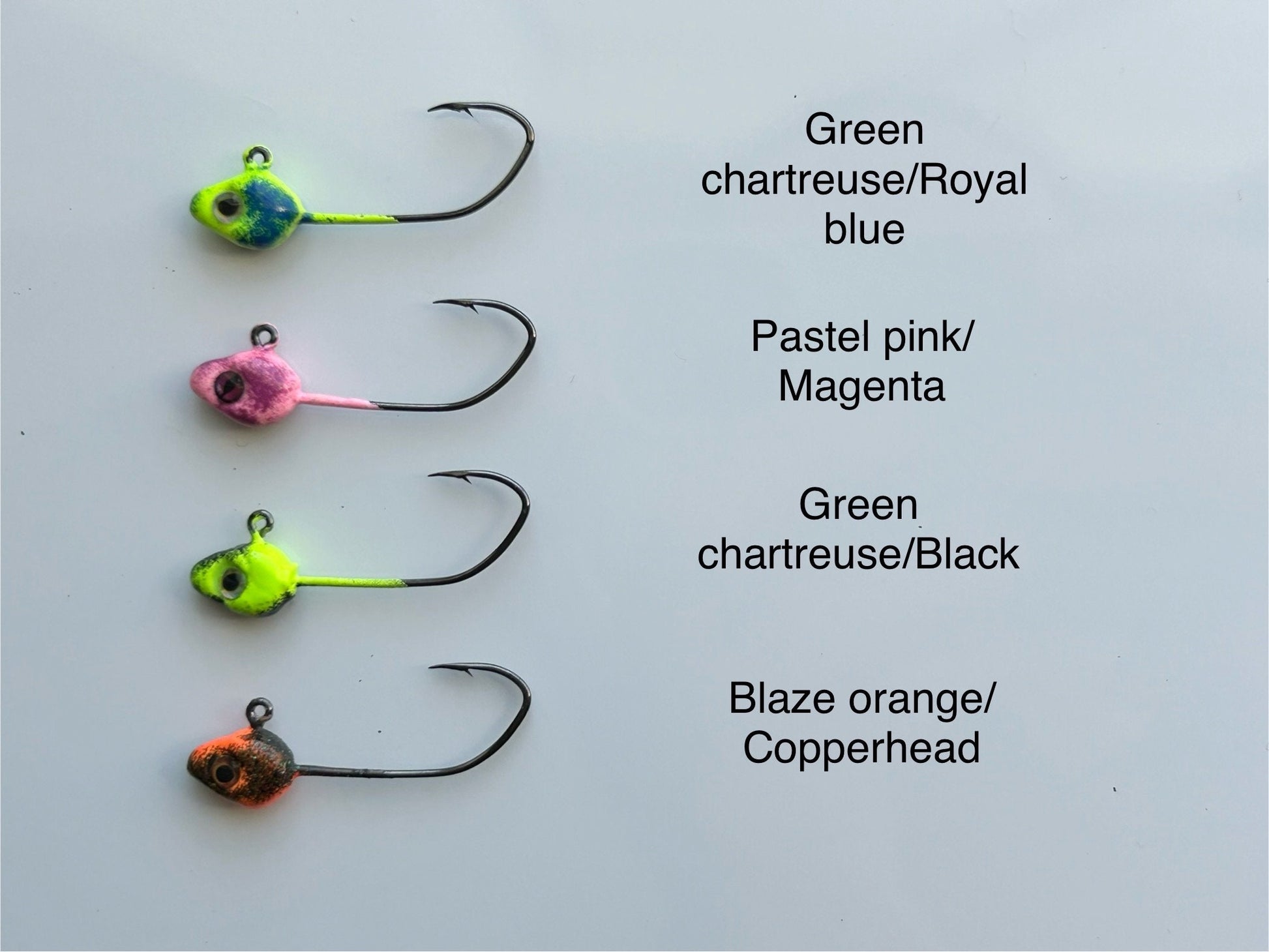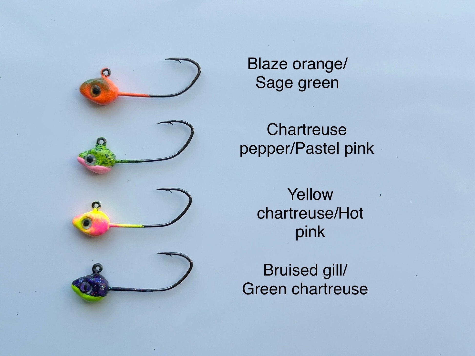 Hand poured and painted minnow jig heads with 3D eyes