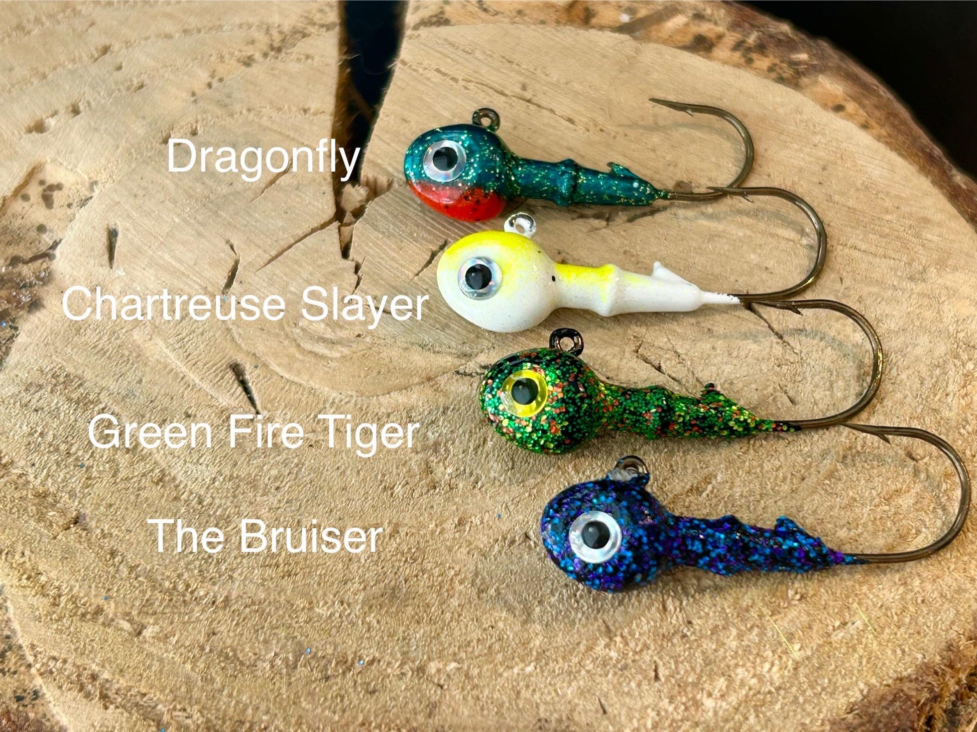 Size options: 5/8 oz hook 4/0 1/2 oz hook 4/0 3/8 oz hook 3/0 1/4 oz hook #1 1/8 oz hook #1 3/32 oz hook #2 1/16 oz hook #4